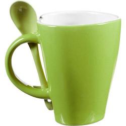 Heart shaped porcelain coffee mug (260ml) with integral spoon dishwasher and microwave proof.