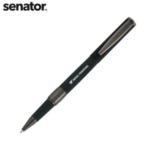 Rollerball with black metal barrel, coated with soft-feel satin finish and brushed gunmetal trim