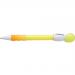 Push cap plastic ballpen with a girl figure on top and a rubber grip, black ink.